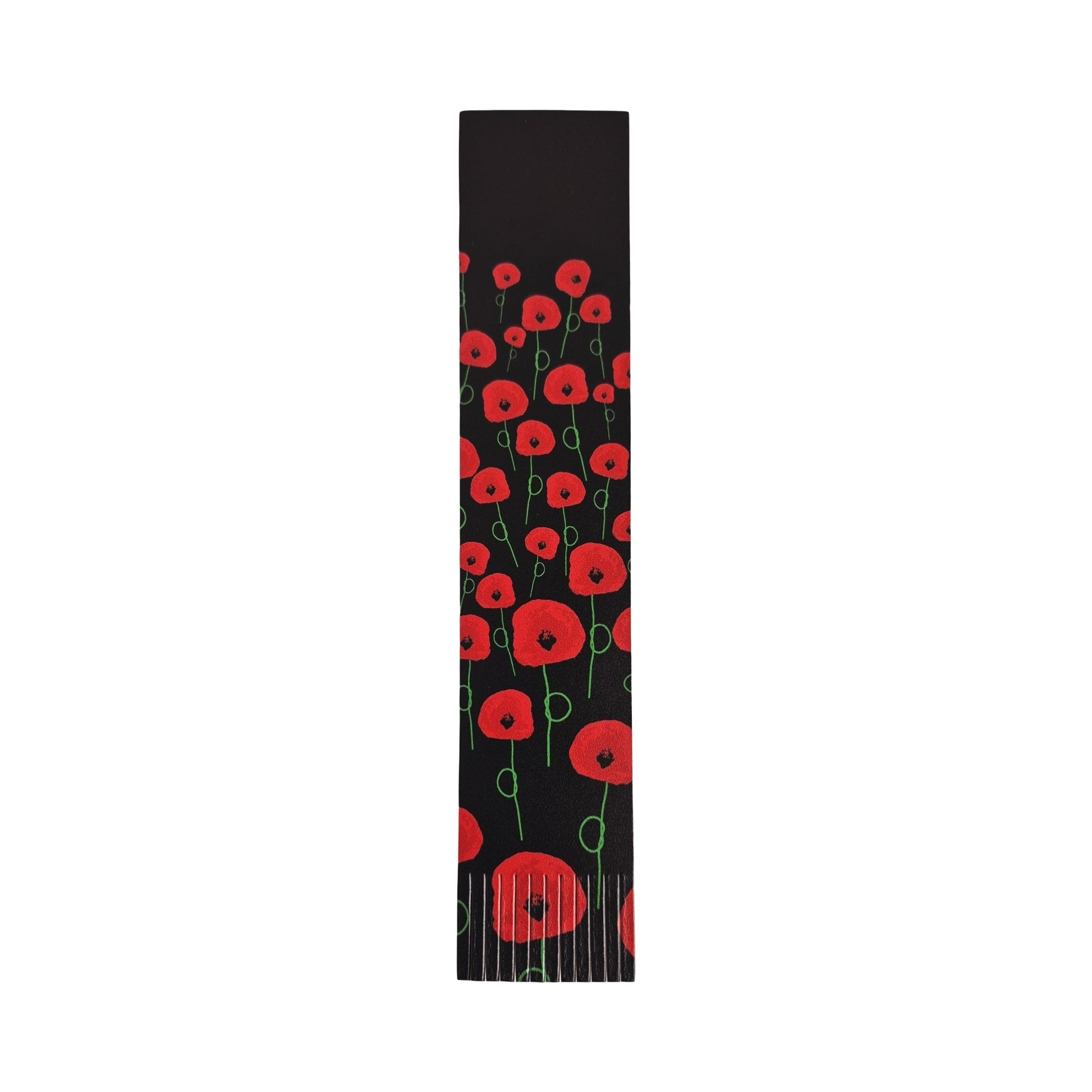 This recycled leather poppy bookmark features a vivid floral print design of the Flanders Field Poppy and serves as a touching symbol of Remembrance.